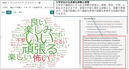 ポジティブ・ネガティブとして判定されたワードをワードクラウドで表示。ブランドに対する消費者からの肯定的・否定的な意見を直感的に把握可能。